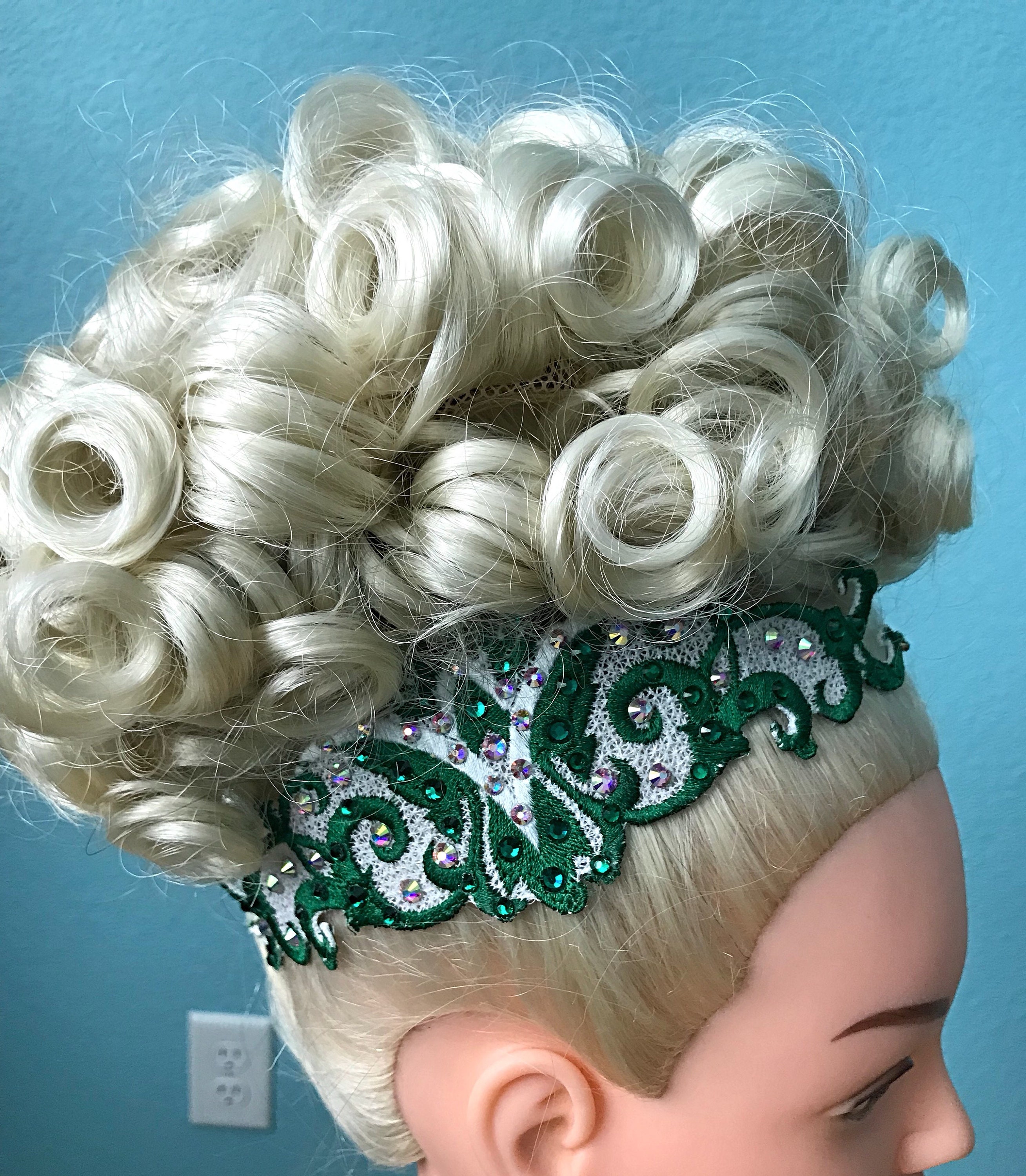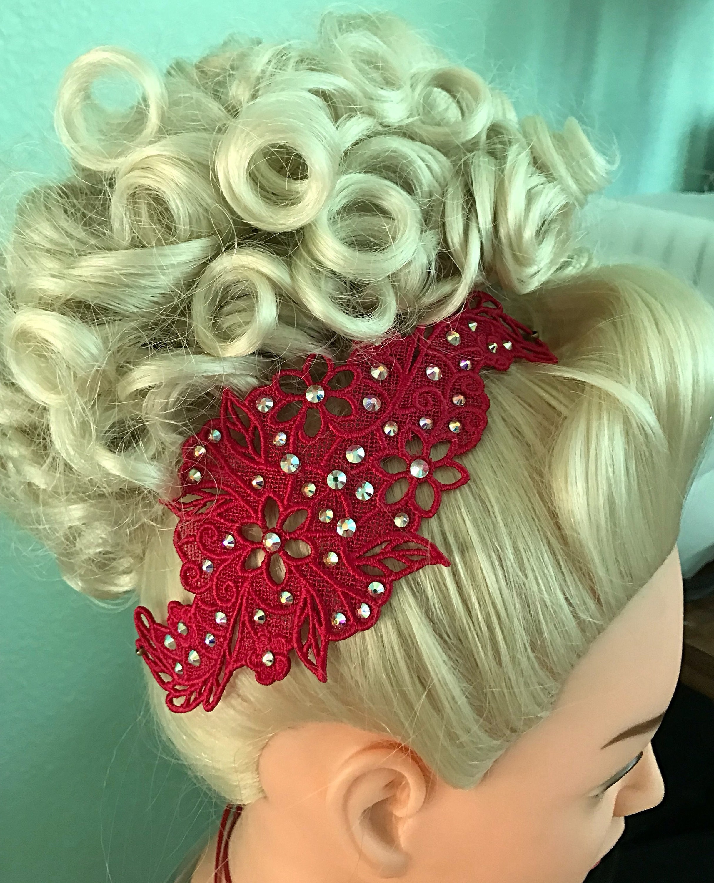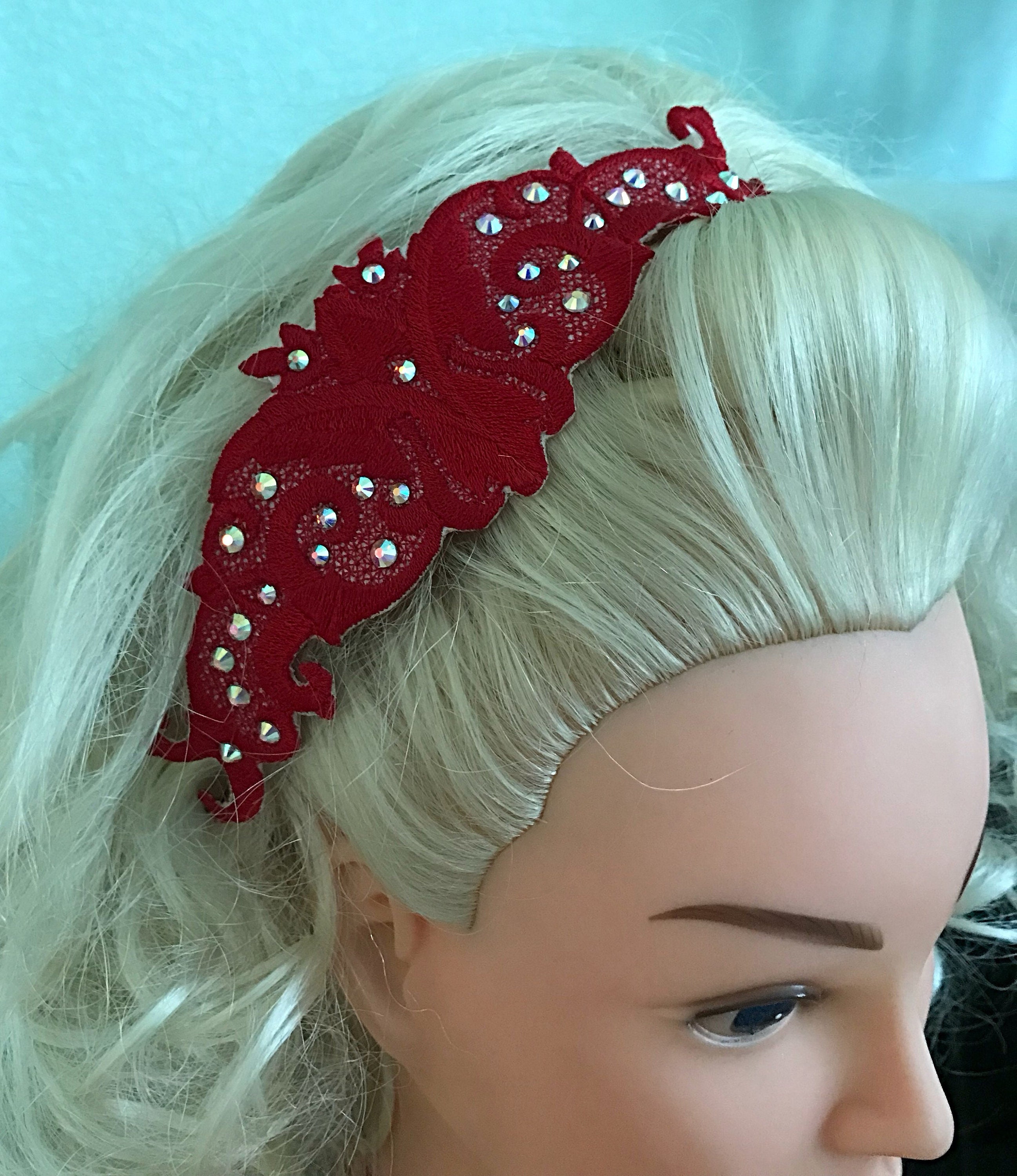 Lace appliqué side tiaras are what’s hot right now. But anyone can buy a piece of lace, glue some Rhinestones on it and bobby pin it on. My lace appliqués are unique and here is why: